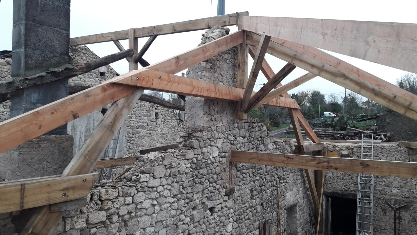 Réfection complète d'une charpente avec ferme sur blochet et entrait retroussée , ferme d'angle et arêtier sur lierne.